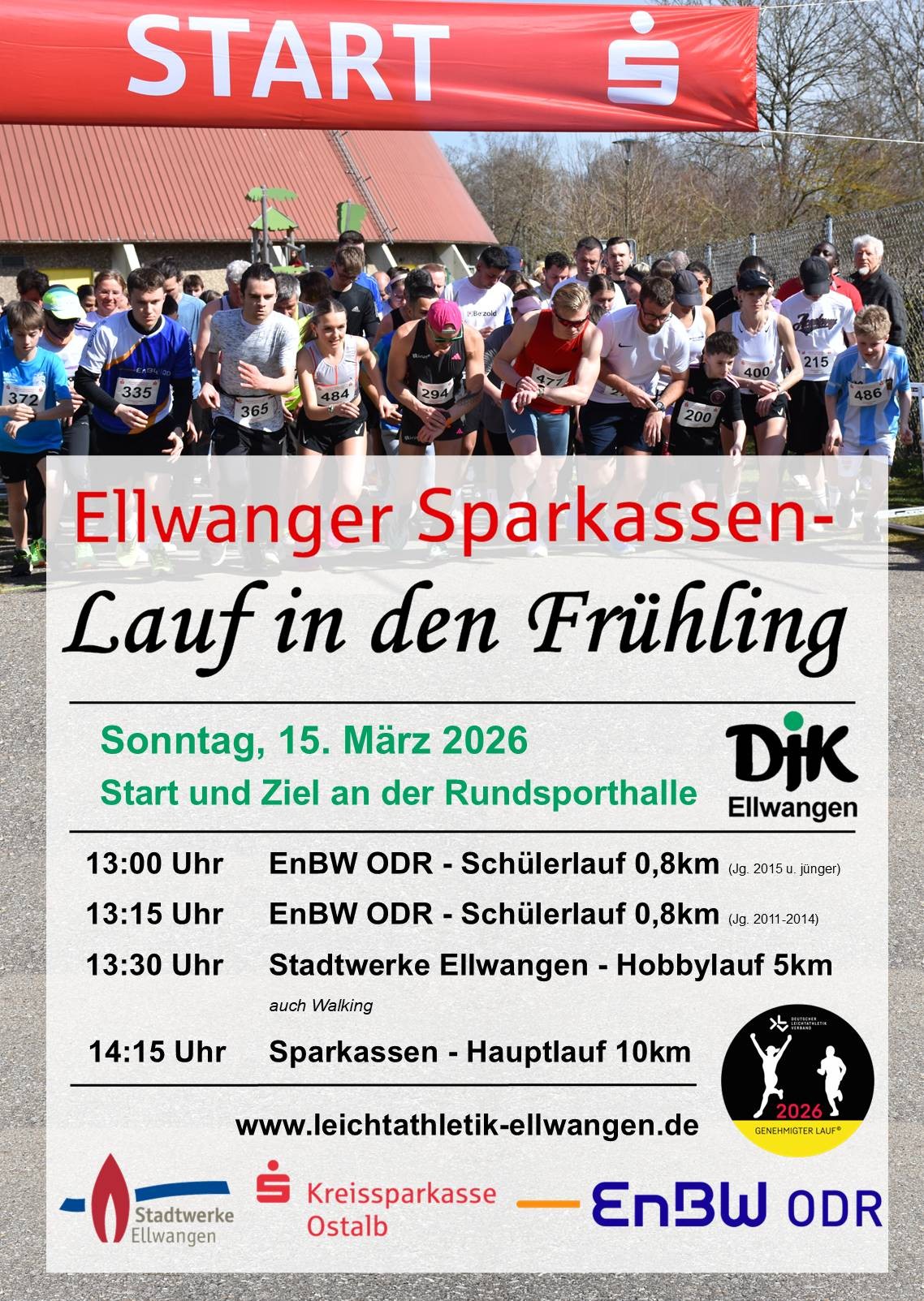 Am 15. März 2026 findet der 12. Ellwanger Sparkassen-Lauf in den Frühling statt.